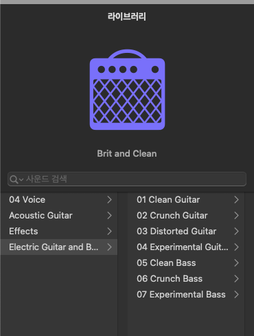 여기서 아래로 내려보면 Electric Guitar and Bass 항목이 있습니다. 클릭해주세요.